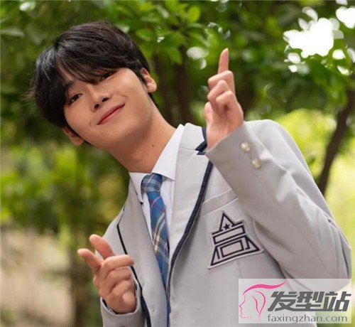 同樣是韓范發(fā)型,這一款就比較服帖。簡單定型搭配,就可勾勒出校園陽光氣質(zhì)十足的暖男形象。