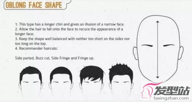 長(zhǎng)方橢圓臉有較長(zhǎng)的下巴,因此整體會(huì)看起來呈現(xiàn)長(zhǎng)方形臉。臉太長(zhǎng)可以利用瀏海來修飾臉型,因?yàn)槟槺旧硪呀?jīng)夠長(zhǎng),就不要再將頭發(fā)梳得太高,不然整個(gè)臉型、頭型就會(huì)變成一個(gè)大冬瓜,一點(diǎn)都不帥啰!可以嘗試Buzz cut、各種蓬松、瀏海發(fā)型以及干凈的平頭。