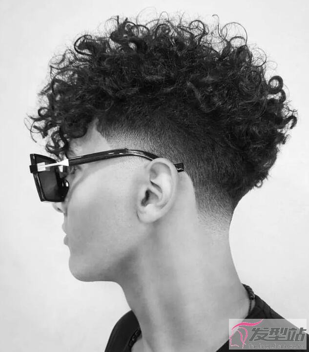 男生燙個(gè)時(shí)髦的小卷發(fā),頭發(fā)超級蓬松,戴上墨鏡,整個(gè)造型酷炫十足,是個(gè)帥氣型男了。