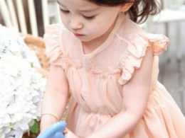 小女孩的一頭直發(fā)扎成了馬尾辮,在此基礎(chǔ)上再扎出層次感,搭配粉色的衣服和發(fā)飾,很有公主范。