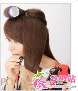 步驟5 步驟1中固定好的頭發(fā)此時可以放下,斜分好,用卷發(fā)棒分層次燙蓬松。