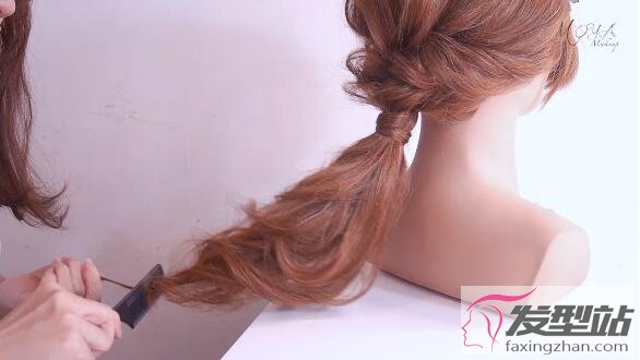 最后捏住發(fā)尾部分 把其他發(fā)絲往360度拉松