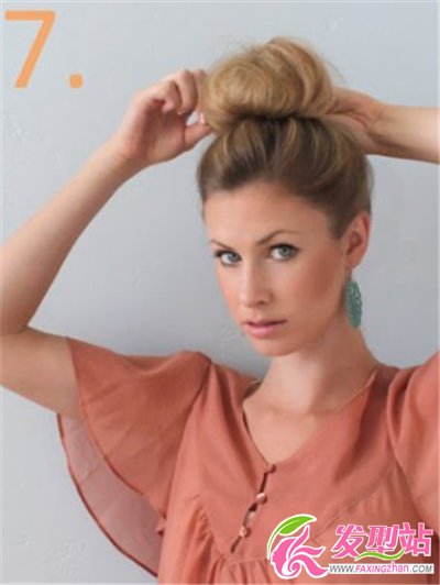 步驟6. 抓著馬尾順時針纏繞發(fā)髻