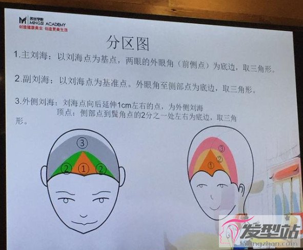 2. 把劉海區(qū)分出來,空氣劉海就分1區(qū),平常劉海就分2區(qū),如果劉海較少就分3區(qū)。