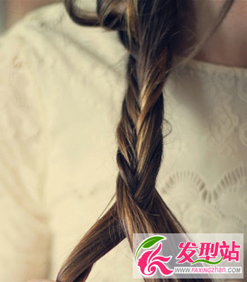 接下來把剩下的一半頭發(fā)分成等量的三股發(fā)束編成麻花辮,到最后用發(fā)卡固定好。