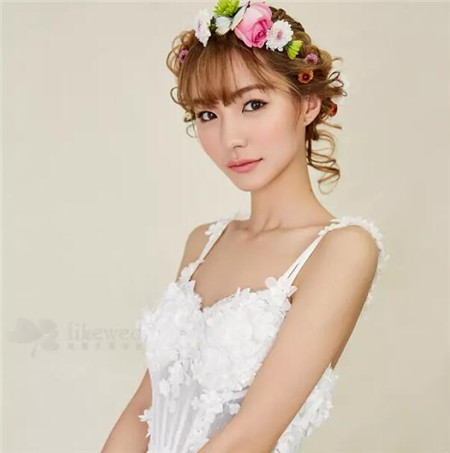 作為新娘子,結(jié)婚當(dāng)天的發(fā)型決不能馬虎。不管是服裝,還是頭發(fā)設(shè)計上。都得設(shè)計出讓自己滿意的效果,花朵發(fā)飾搭配自然黑發(fā)型,宛如花仙子似的。