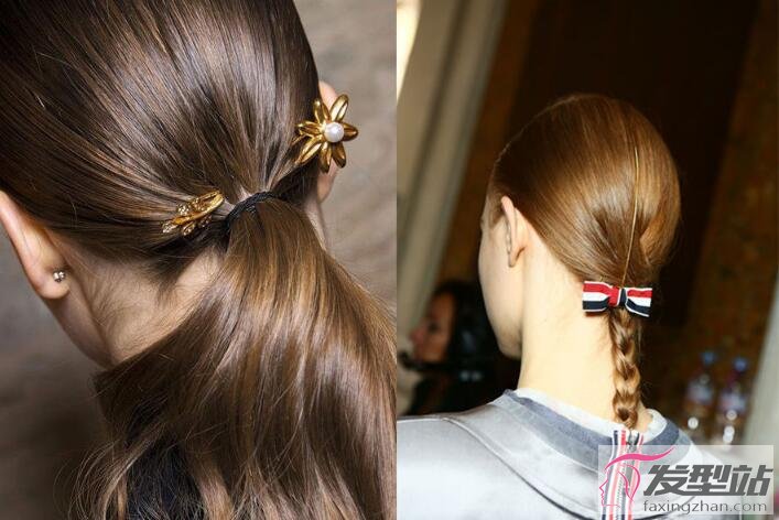 在馬尾或編發(fā)的根部加上飾物點(diǎn)綴,不會過于浮夸,而且易作不同配搭。如配戴花朵形狀或蝴蝶結(jié)的發(fā)飾,能提升少女感。