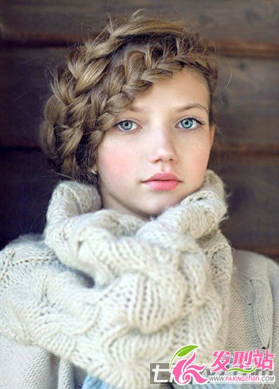 小編點(diǎn)評(píng):麻花辮編發(fā)盤發(fā)發(fā)型,用辮子當(dāng)劉海,配上MM清新的妝容,藍(lán)色的眼睛,甜美無敵。