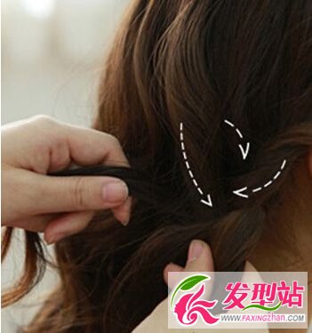 第二步:編織一道麻花辮后再接下來的編發(fā)過程中不斷的加入發(fā)絲。