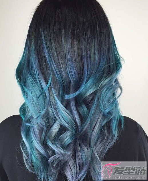 藍(lán)色漸變發(fā)色,顏色非常吸精惹眼,再燙個(gè)時(shí)尚的卷發(fā)發(fā)型,很有時(shí)尚潮流feel。