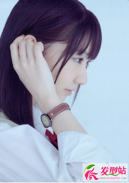 整齊的劉海稍微分開一條縫,劉海兩邊的頭發(fā)修飾臉型,讓臉型看起來更加小巧精致,后面的編發(fā)清爽簡(jiǎn)單,很好的展現(xiàn)側(cè)面線條。非常適合中學(xué)生。