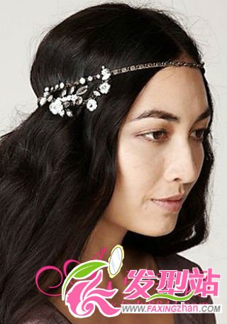 編織式發(fā)飾,戴在額頭的中間位置,妝容和發(fā)型都有被修飾到,溫婉又優(yōu)雅的完美組合。 可算最簡單的一款發(fā)飾了。纖細的金屬發(fā)帶上零星地分散著一朵朵金屬小花,再配上一款毫無瑕疵的裸妝,十分純" />