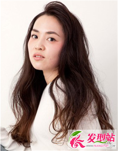 這款長發(fā)發(fā)型蓬松張揚(yáng),從頭發(fā)上部開始燙成不規(guī)則的卷發(fā),劉海隨意劃分,給人以朝氣蓬勃的感覺。