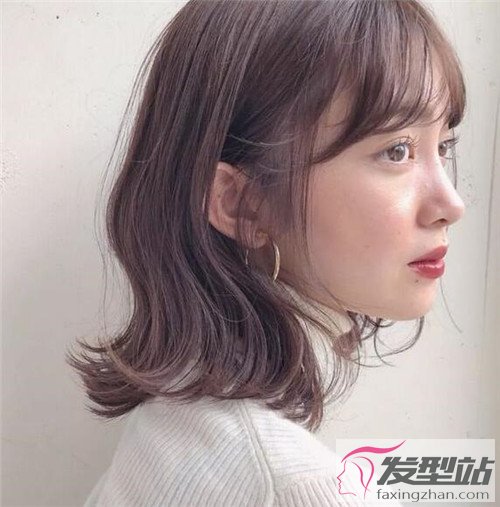 霧紫色染發(fā),搭配直發(fā)外翹的短發(fā),柔順飄逸的齊劉海顯得很自然大方。