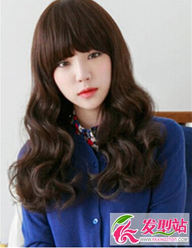 滿滿的厚重感齊劉海,俏麗嫵媚的波浪卷披肩長發(fā),染上時尚的栗色系氣質(zhì),簡單不是個性的感覺,搭配上白皙的小臉,頗具清新感覺。