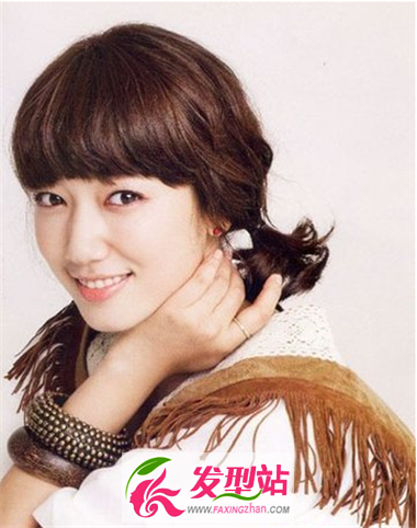 蓬松浪漫的長卷發(fā)設(shè)計,大家已經(jīng)見過很多的啦,想與眾不同,那么就將劉海用發(fā)繩一起編制一個麻花辮散落在卷發(fā)中吧,讓你于時尚來個約會。