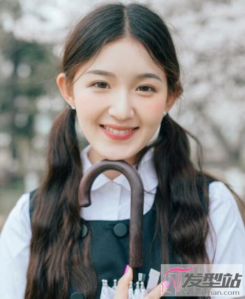 露額造型很適合額頭不高的女生,將頭發(fā)燙出大弧度的卷曲,雙扎成低馬尾,簡約的設(shè)計(jì)很有小清新范。