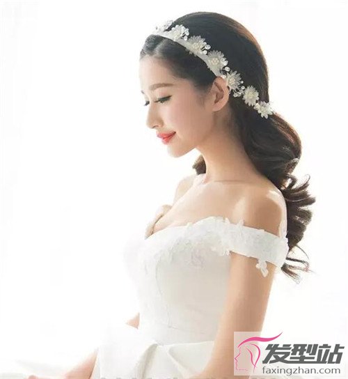 側面看這款潔白式的新娘發(fā)型,給人一種歲月靜好的美好氣息。