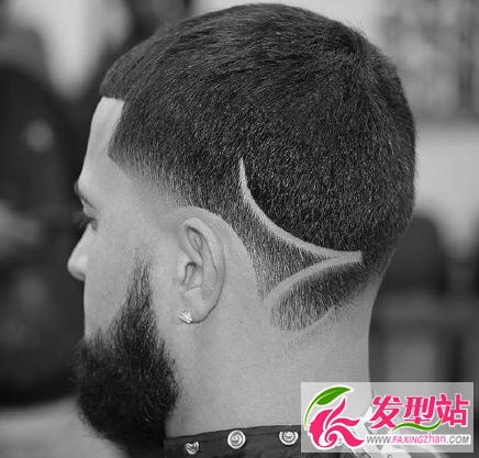 這個發(fā)型剃成漸變長度的短發(fā),耳邊整齊修剪,在后腦勺雕刻花紋。