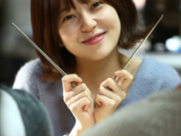 日系斜劉海修剪出層次感,正好能修飾女生的高額頭,搭配卷發(fā)和巨大耳飾,打造出小清新范。