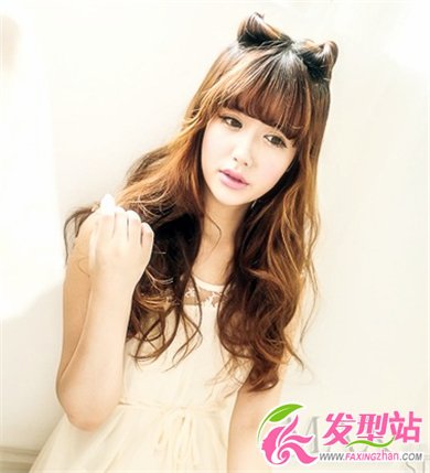 齊劉海的設(shè)計(jì),黃棕色的卷發(fā)披散在胸前,彰顯十足的學(xué)生氣,萌萌的表情打造小蘿莉形象。