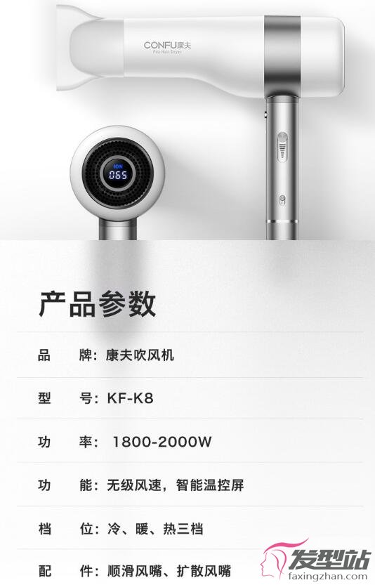 康夫負(fù)離子電吹風(fēng)機(jī)K8,一款可以智能控溫顯濕的吹發(fā)新科技,簡(jiǎn)約時(shí)尚造型,符合現(xiàn)代年輕人的審美,無(wú)級(jí)別變速設(shè)計(jì),定制你的專屬吹發(fā)溫度,給你帶來(lái)全新的吹發(fā)體驗(yàn)!