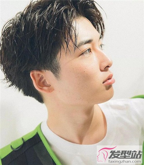 棱角線條硬朗的男生,不明顯的分發(fā)線劉海,凸顯出高額頭,使得臉型更立體。