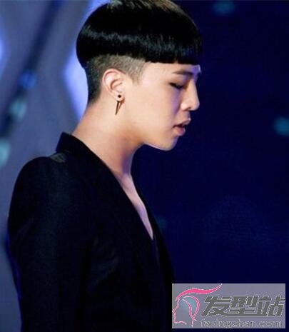 頂部頭發(fā)打造出蓬松的效果,后脖處的頭發(fā)剃得很細(xì)碎,在發(fā)量上形成鮮明對比,穿上黑色西裝,很有男人味。