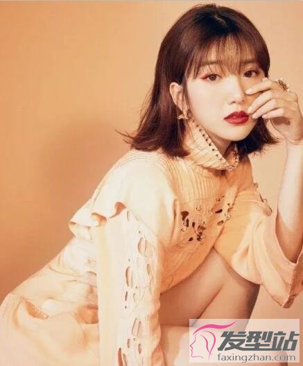 同樣是適合大臉女生的短發(fā),染發(fā)顏色襯托得肌膚愈發(fā)白皙透亮,長長的劉海更襯托得臉瘦了一圈。