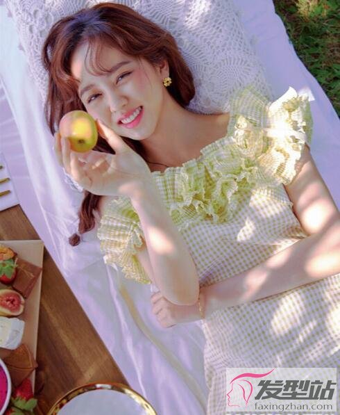 中分的劉海,臉頰處蓬松,修飾上寬下窄的臉型缺點(diǎn)。
