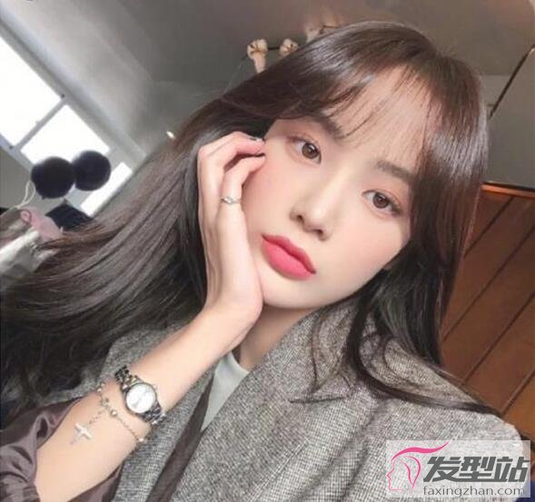這款中長(zhǎng)發(fā)較為輕薄,雖然棕色系染發(fā)比較低調(diào),但在陽(yáng)光照耀下發(fā)出亮眼的光澤。發(fā)尾長(zhǎng)短不一,帶有層次感,與眉毛等齊的劉海很有特色,搭配額前的碎發(fā),臉型看上去沒(méi)有那么圓潤(rùn)了。