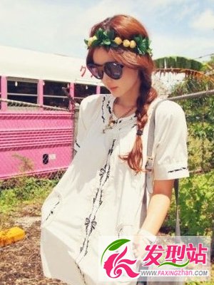 側(cè)扎馬尾辮,先把頭發(fā)扎成蓬松的麻花辮然后把頭發(fā)扎起來放到一邊,配上蜜糖色的染發(fā),更加清新可愛,很有田園風(fēng)格。