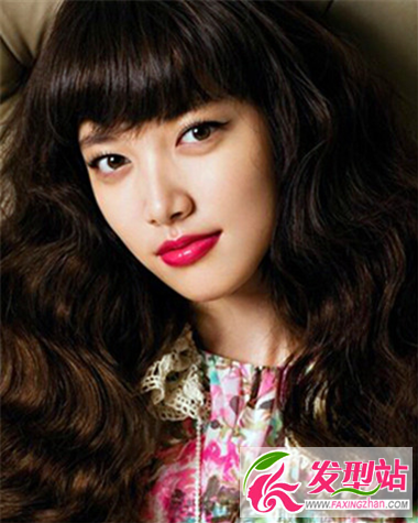 想要修飾臉型,最完美的做法就是講劉海剪得厚厚的,弄你厚重的齊劉海,搭配上大大的波浪卷,櫻桃紅唇,秀色可餐哦!