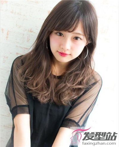 中長發(fā)的發(fā)尾燙卷,顯得飄逸靈動,加上斜劉海的修飾,使得圓臉女生的下巴尖俏了不少。