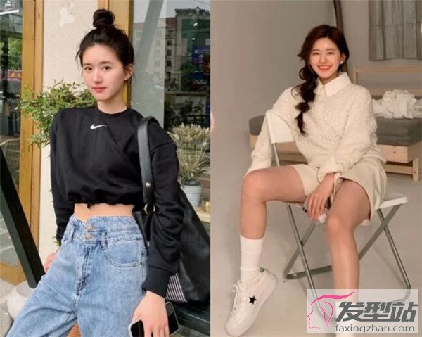 如果想要清爽一點的編發(fā),高丸子頭跟低馬尾兩種編法也很適合,都能在視覺上拉長臉部的長度,只要在鬢角、額角附近拉出自然的胎毛劉海,看起來就減齡又修飾臉型!