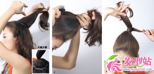 1.首先把后腦處頭發(fā)分出一個比自己拳頭略小一圈的區(qū)域,用發(fā)圈固定拉緊。
