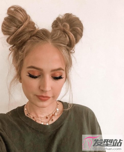這款雙丸子頭發(fā)型扎得比較蓬松自然,發(fā)量少這個(gè)方法要pick一下,非常實(shí)用。
