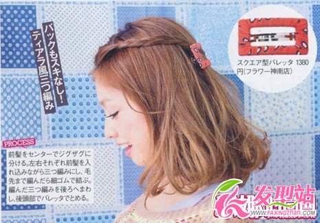 兩側(cè)編起的劉海在腦后用簡約大方的方形夾來固定,非常精致!