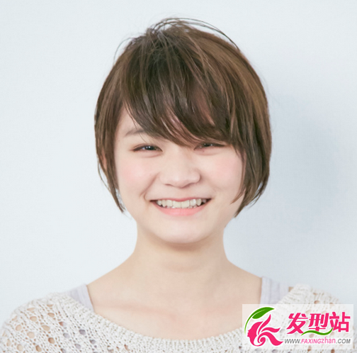 模特原本的發(fā)型就是短發(fā),不是說韓式短發(fā)顯瘦嗎?妹紙的劉海和兩邊內(nèi)扣的設計都是為了顯瘦,但是適得其反,這款發(fā)型讓臉變得更方了!