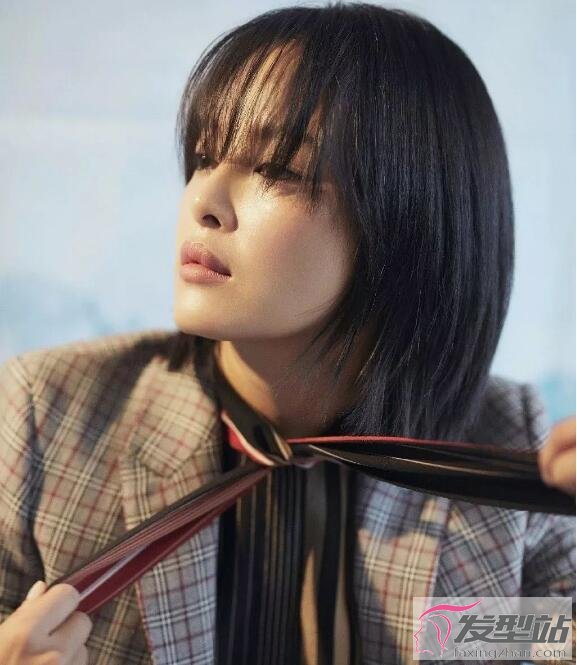 發(fā)量不多的妹子可以參考辛芷蕾同款高層次中短發(fā),發(fā)量多的妹子可以剪相同的長度,劉海高層次處理!