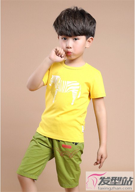 發(fā)量超級驚人的寶貝,這款很有氣質(zhì)的發(fā)型,一定適合你。劉海厚重齊整,遮住了男孩的眉毛,顯得整個臉型非常圓潤,可愛極了。