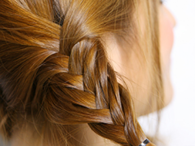 步驟四:把發(fā)辮周圍的頭發(fā)慢慢編進(jìn)去。