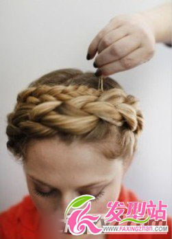 步驟八:一直繞到辮子末端,為了防止辮子亂動(dòng),可以沿路用小發(fā)夾固定。