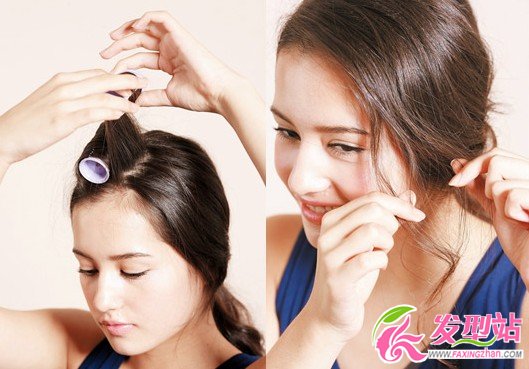 step4:用手一一分開卷發(fā)劉海,調(diào)整一下位置,完成這款扎發(fā)。