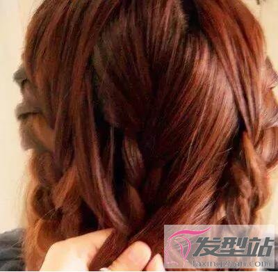 第二步:在編三股辮的過程中,不斷地從旁邊取適量的頭發(fā),編進三股辮內。