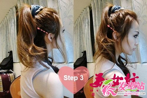 將耳后的頭發(fā)隨性抓起,在綁上可愛的發(fā)飾做裝飾。