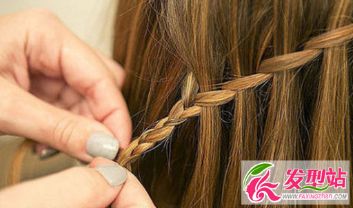 把頭發(fā)撥開,發(fā)尾固定到里面,這樣就可以輕松的把發(fā)尾藏起來了,氣質(zhì)的瀑布辮也就完成了。