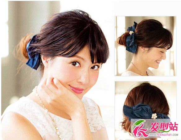 首先要介紹的是一款優(yōu)雅的盤發(fā)再戴上一款藍(lán)色的蝴蝶結(jié)發(fā)夾,甚是端莊,頗有名媛貴婦的氣質(zhì)。