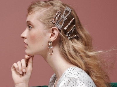在扎發(fā)前,首先要選一款比較能和發(fā)型相搭的盤發(fā)發(fā)飾,并且還要和自己的服裝相搭。