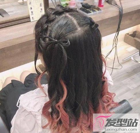 發(fā)尾染個粉色發(fā)色,頭上有蝴蝶結造型點綴,這樣的半扎發(fā)發(fā)型彰顯出時尚范,特別甜美可愛。